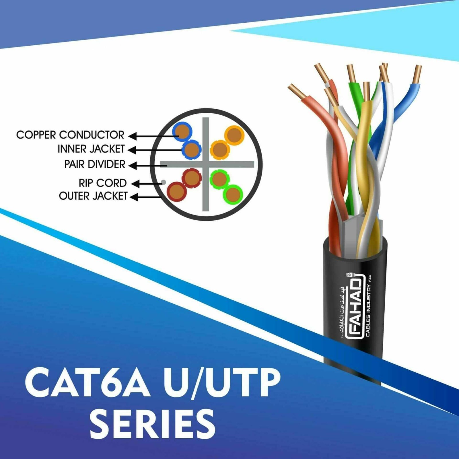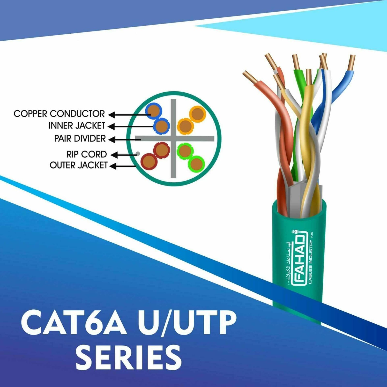 FAHAD CABLES 4 pair twisted cable cat6a 23 awg 305m are Manufactured Tested and Complied with ANSI/TIA/568.2-D CENELEC EN 50288-5IEC 61156-5 (ISO/IEC-11801 Class -Ea). Cat6a Series is Designed to Ensure the Highest levels of performance, reliability, and longevity, and are ideal for large enterprise and small business.cat6a network cable 23awg 4 Twisted pair 305m.cat6a network cable 23awg 4 Twisted pair 305m