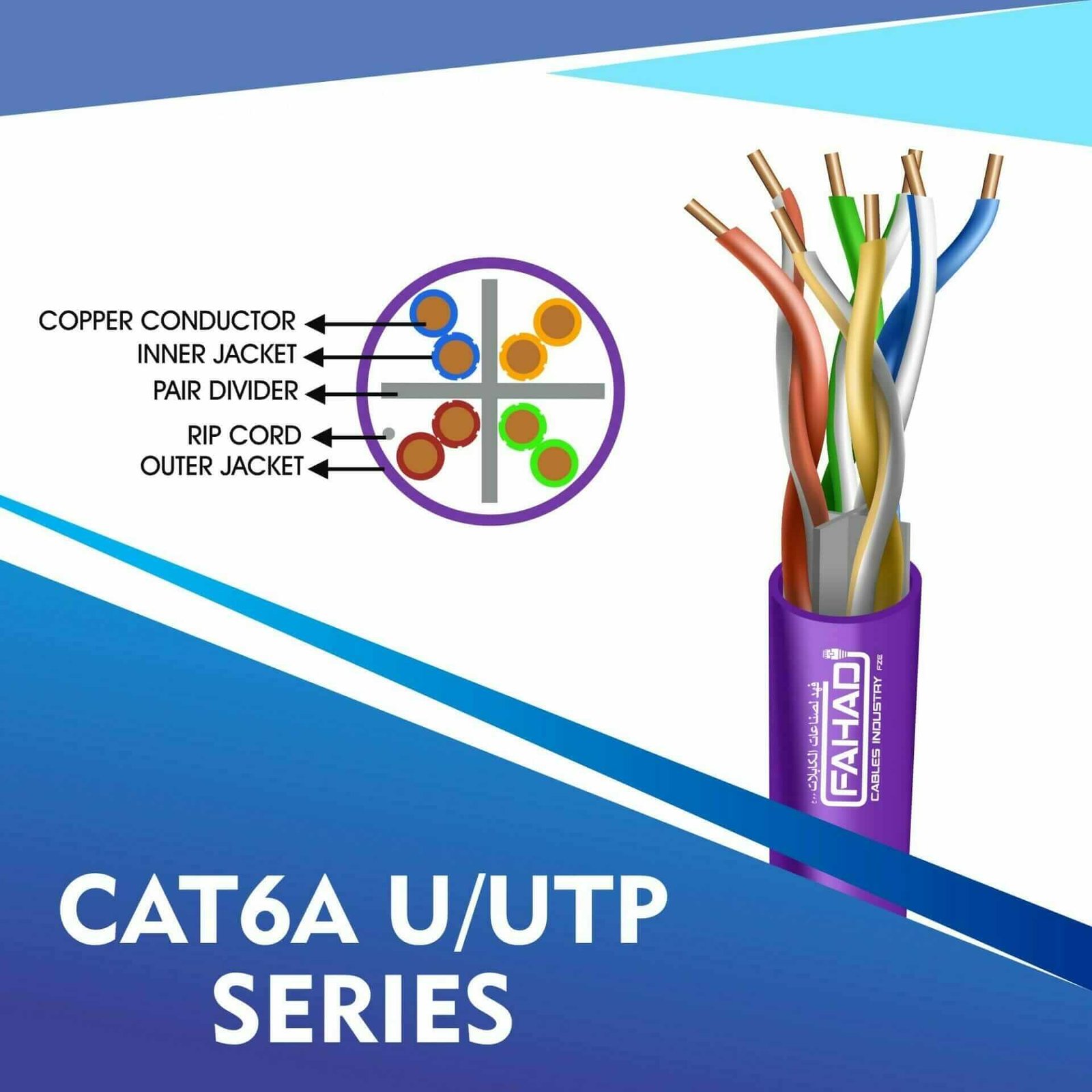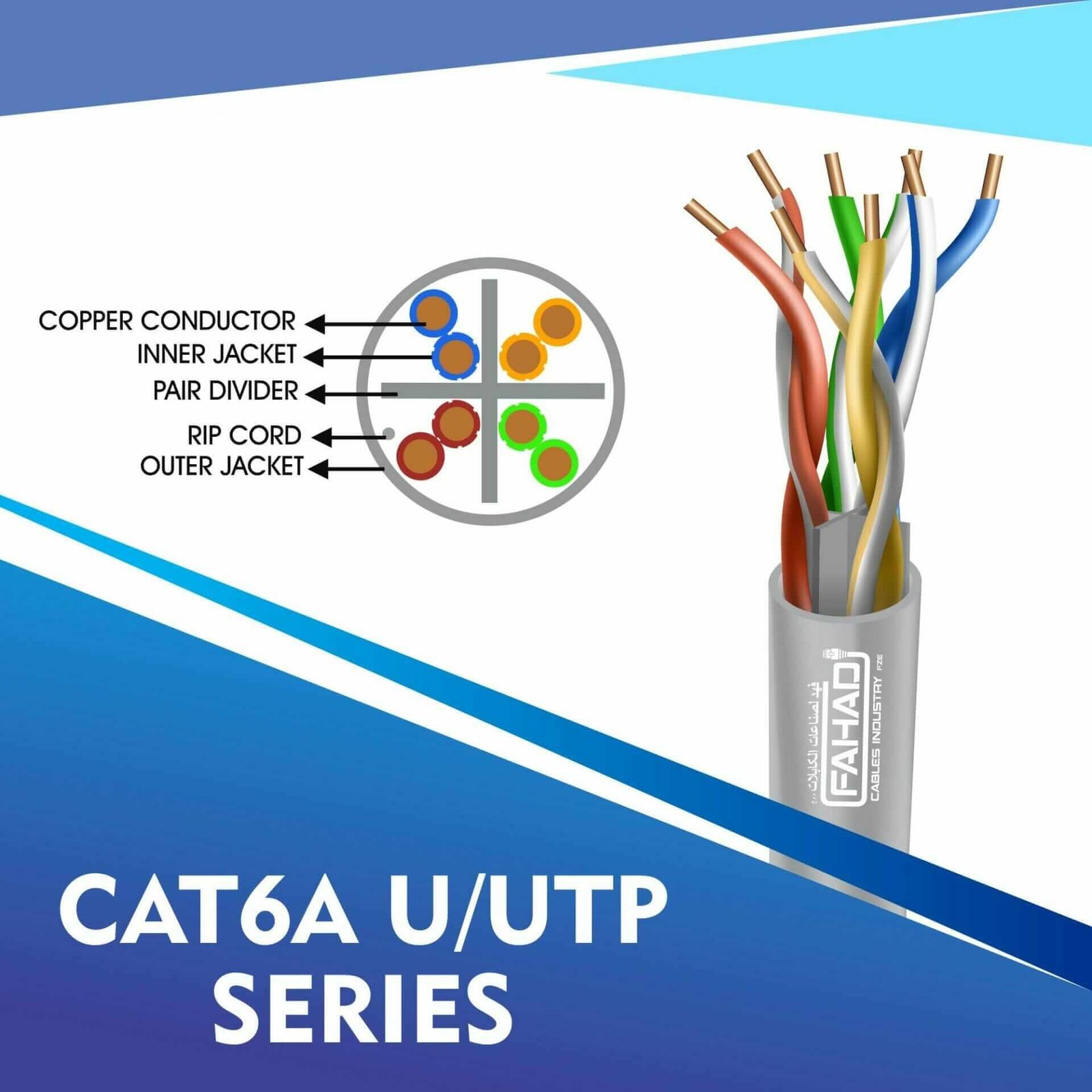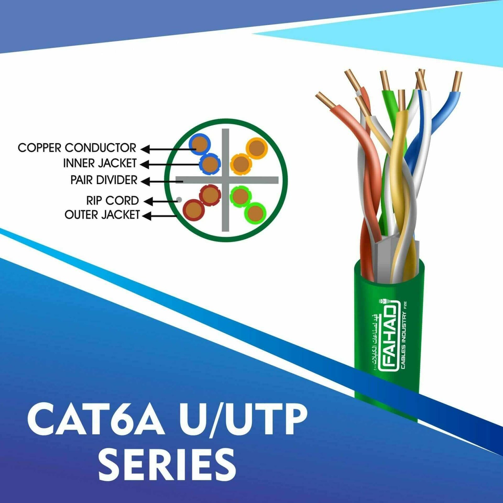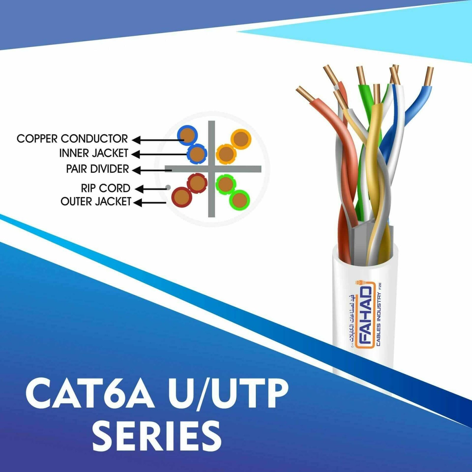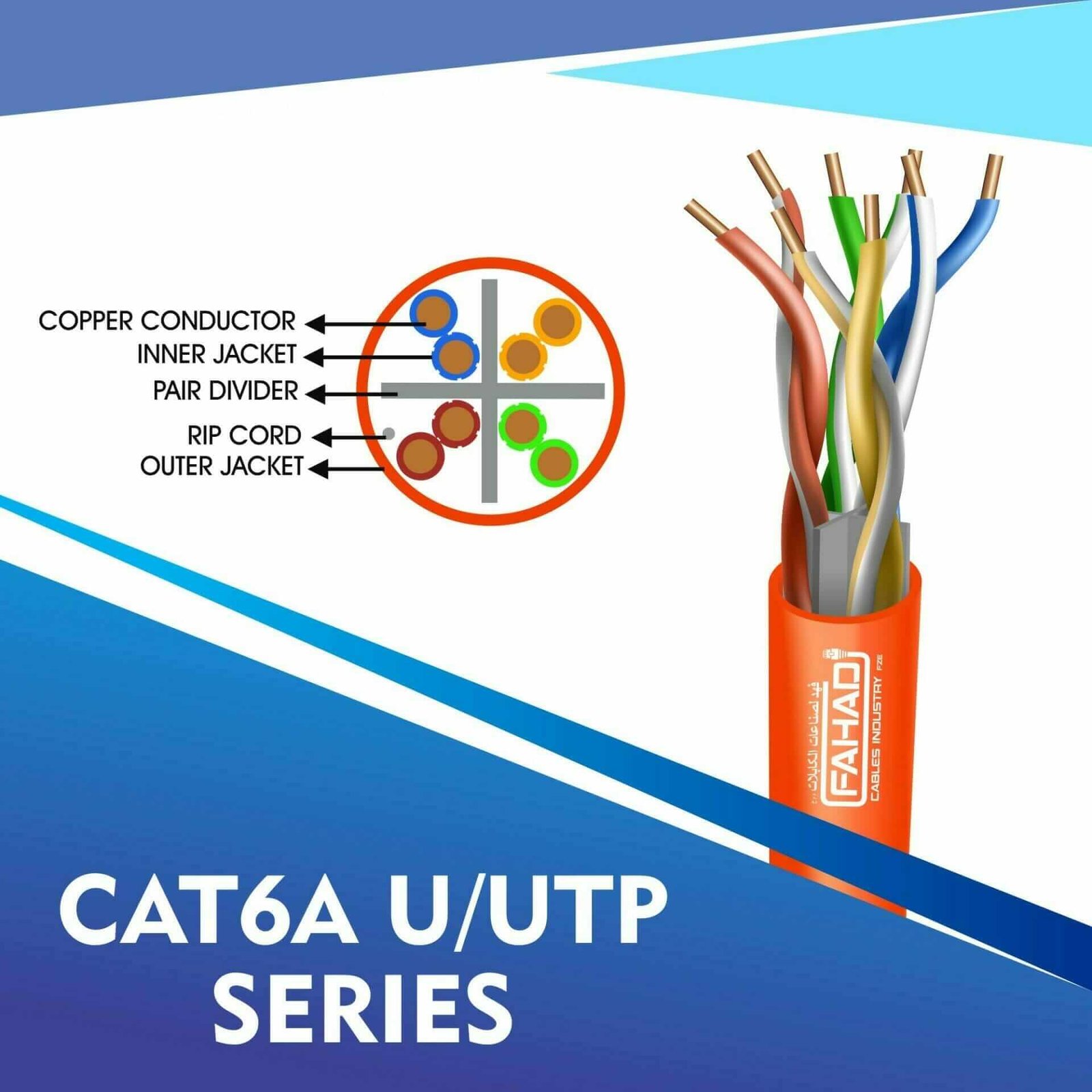 Fahad Cables Industries FZE is one of the most Reputable Manufacturers of Network cables in the Middle East. Providing a Happier, Richer Future through Providing Solutions for copper range cat3,cat5e,cat6,cat6a,cat7 and cat8 networking cables Coaxial Cables Automation Cables Industrial and Building Automation Cables data patch cords fiber patch cord pigtails and optical communication for the past 20 Years. Founded an ultra high-speed multimedia world with full flash production facility in Sharjah Hamriya Free Zone (United Arab Emirates) to facilitate you throughout the telecommunication world.