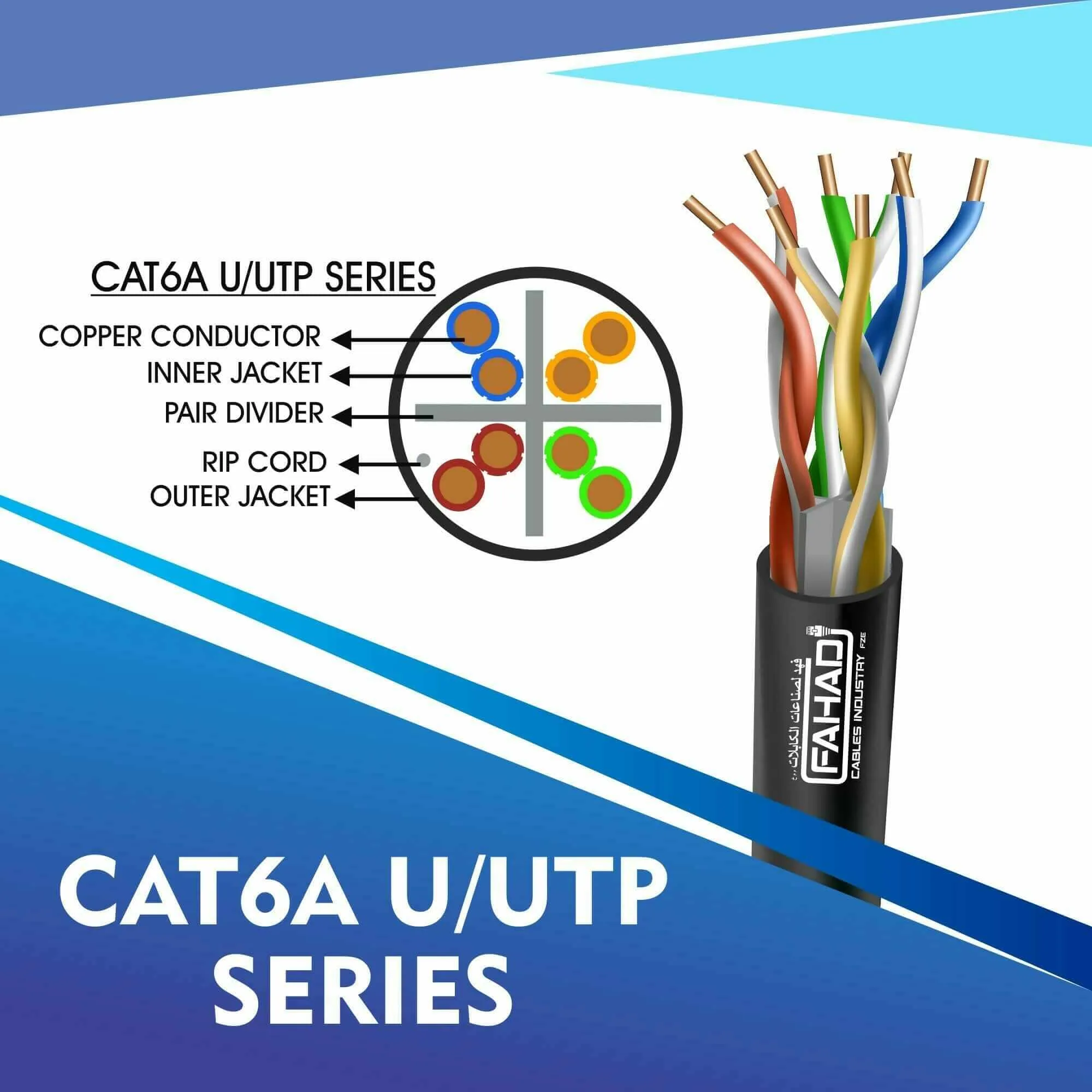 Fahad Cables Industries FZE is one of the most Reputable Manufacturers of Network cables in the Middle East. Providing a Happier, Richer Future through Providing Solutions for copper range cat3,cat5e,cat6,cat6a,cat7 and cat8 networking cables Coaxial Cables Automation Cables Industrial and Building Automation Cables data patch cords fiber patch cord pigtails and optical communication for the past 20 Years. Founded an ultra high-speed multimedia world with full flash production facility in Sharjah Hamriya Free Zone (United Arab Emirates) to facilitate you throughout the telecommunication world.