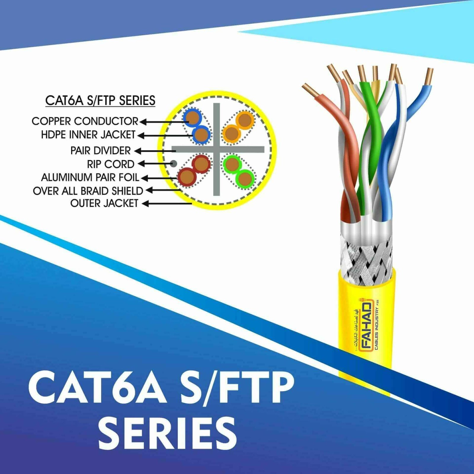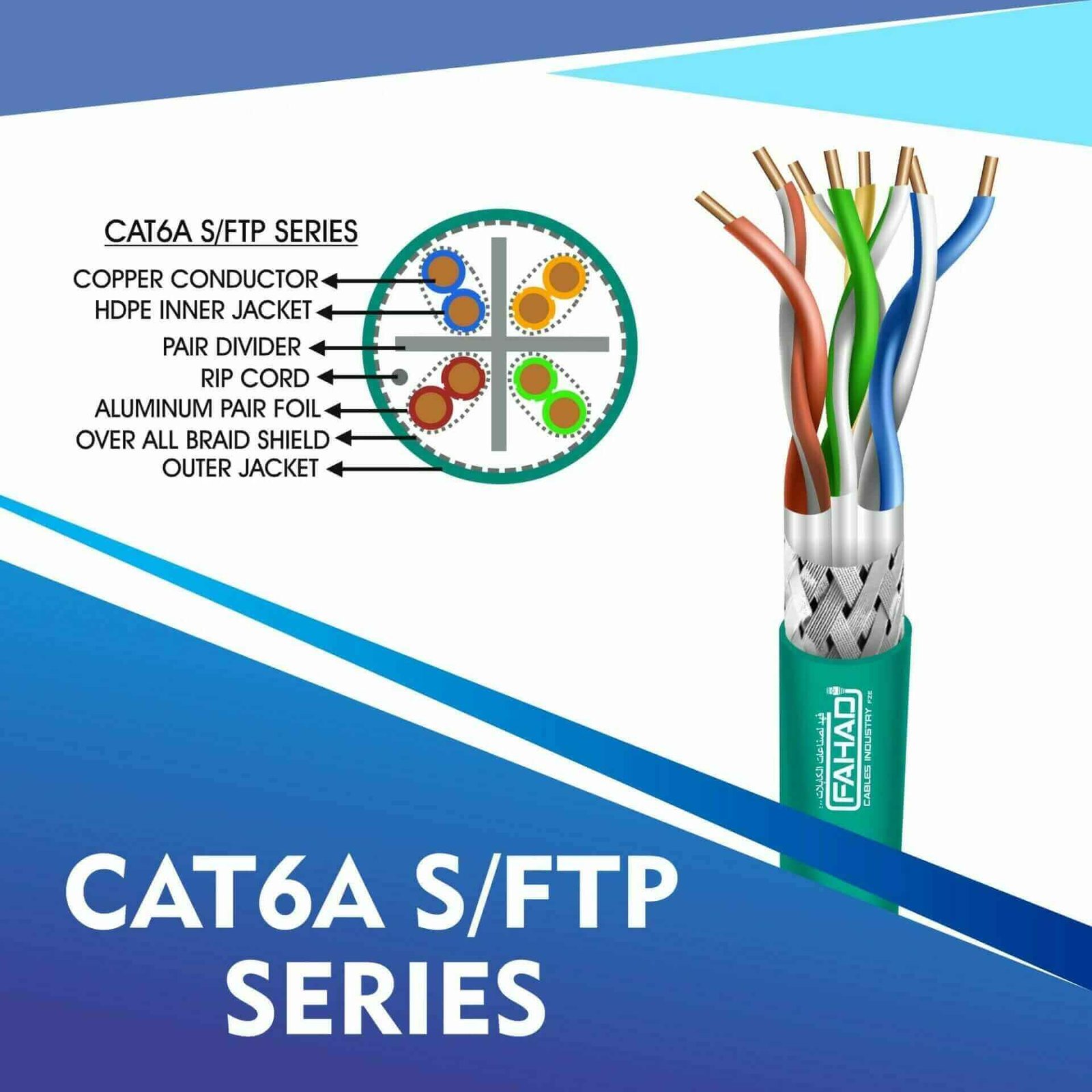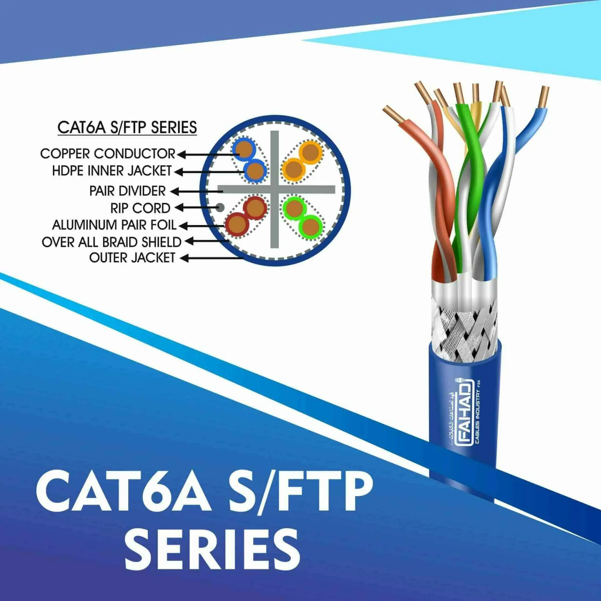 Fahad Cables Industries FZE is one of the most Reputable Manufacturers of Network cables in the Middle East. Providing a Happier, Richer Future through Providing Solutions for copper range cat3,cat5e,cat6,cat6a,cat7 and cat8 networking cables Coaxial Cables Automation Cables Industrial and Building Automation Cables data patch cords fiber patch cord pigtails .
