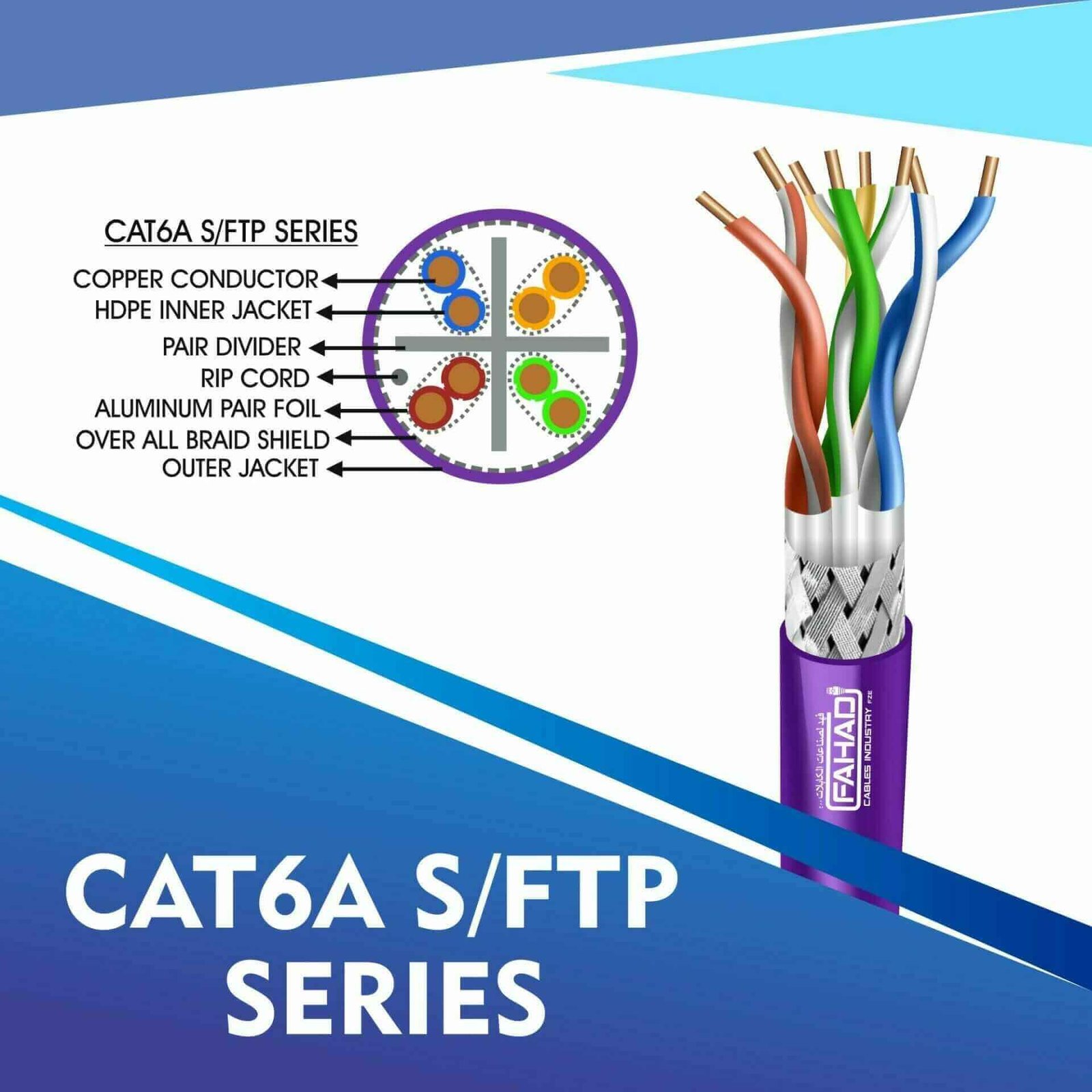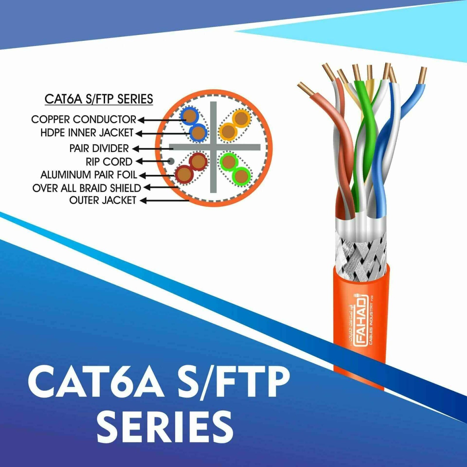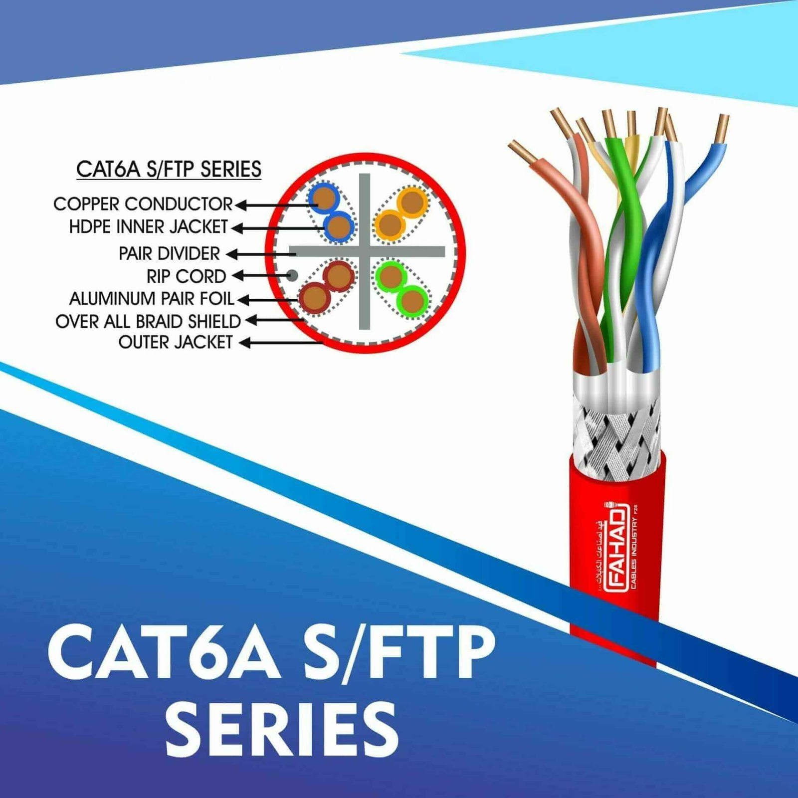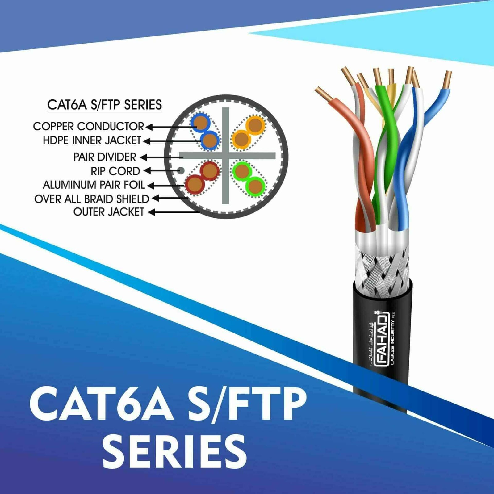 Fahad Cables Industries FZE is one of the most Reputable Manufacturers of Network cables in the Middle East. Providing a Happier, Richer Future through Providing Solutions for copper range cat3,cat5e,cat6,cat6a,cat7 and cat8 networking cables Coaxial Cables Automation Cables Industrial and Building Automation Cables data patch cords fiber patch cord pigtails .