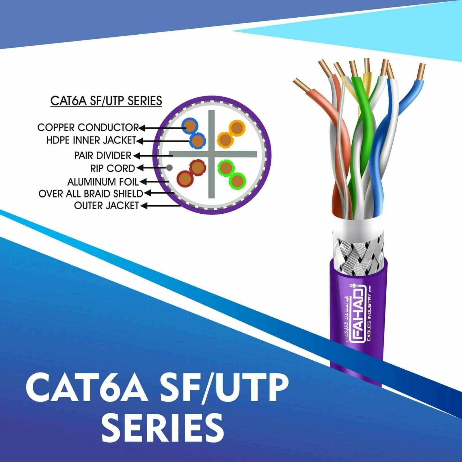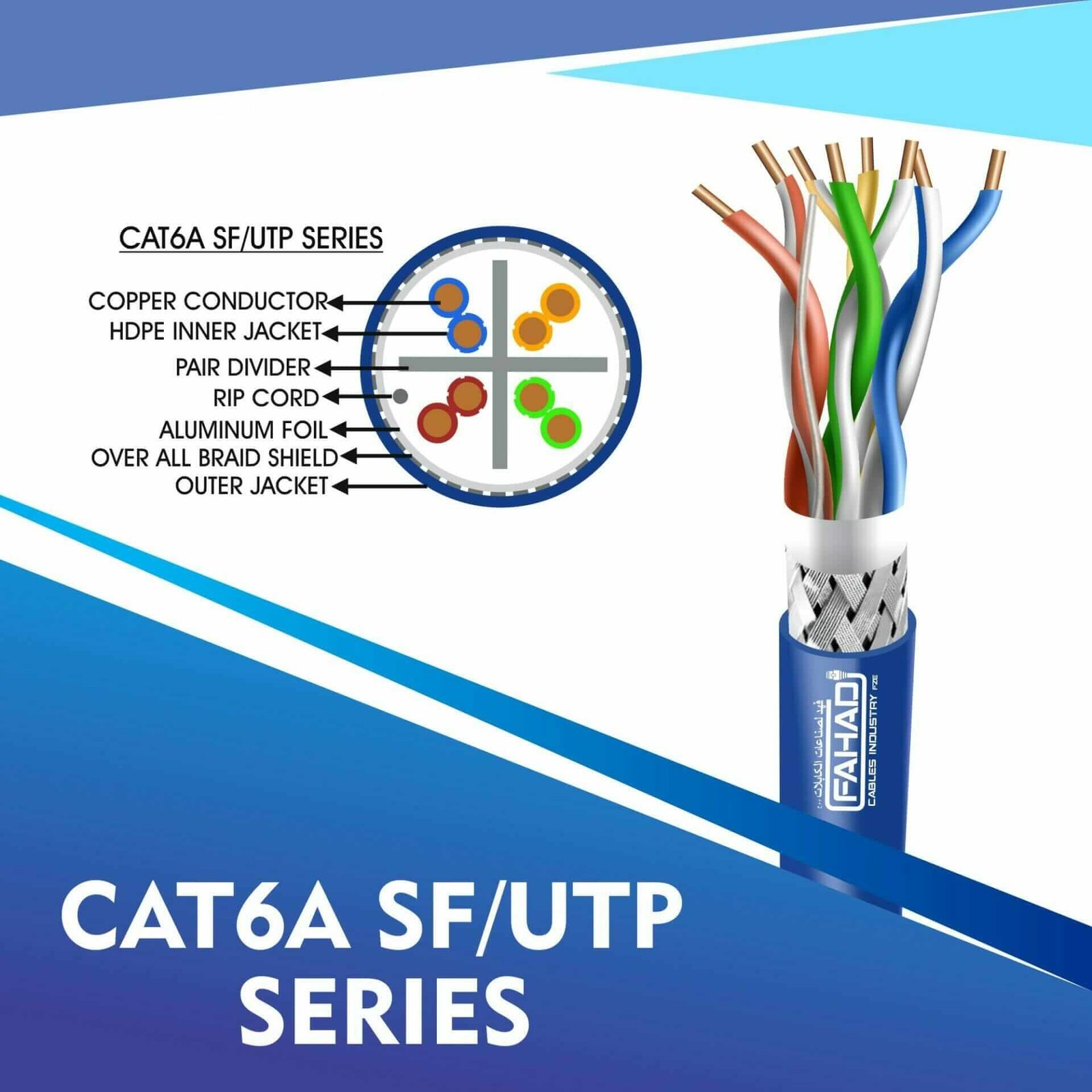 Fahad Cables Industries FZE is one of the most Reputable Manufacturers of Network cables in the Middle East. Providing a Happier, Richer Future through Providing Solutions for copper range cat3,cat5e,cat6,cat6a,cat7 and cat8 networking cables Coaxial Cables Automation Cables Industrial and Building Automation Cables data patch cords fiber patch cord pigtails and optical communication for the past 20 Years.