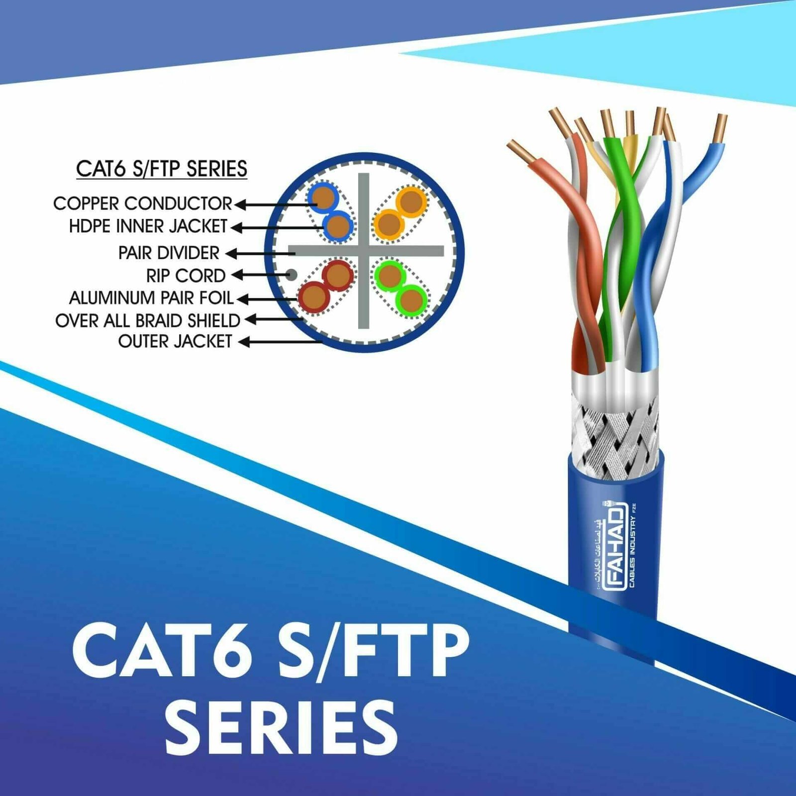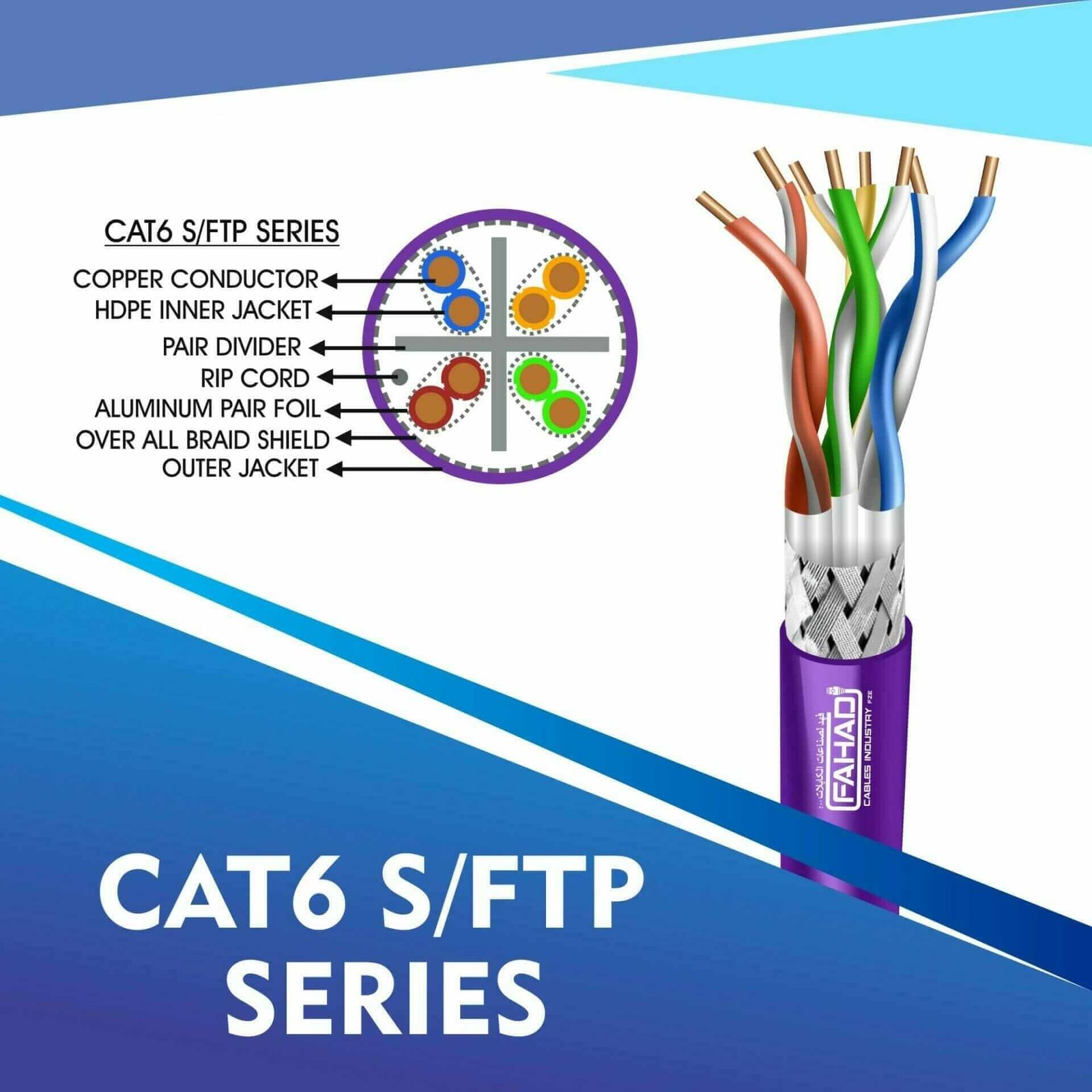 Fahad Cables Industries FZE is one of the most Reputable Manufacturers of Network cables in the Middle East. Providing a Happier, Richer Future through Providing Solutions for copper range cat3,cat5e,cat6,cat6a,cat7 and cat8 networking cables Coaxial Cables Automation Cables Industrial and Building Automation Cables data patch cords fiber patch cord pigtails and optical communication for the past 20 Years.
