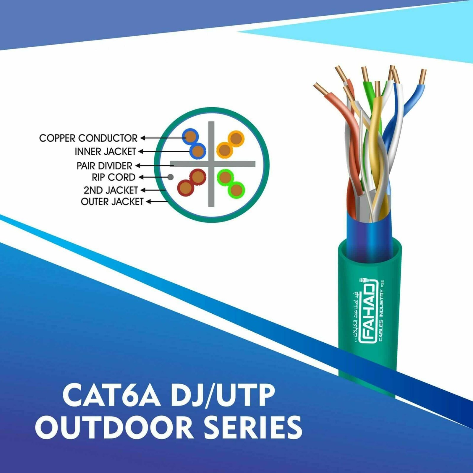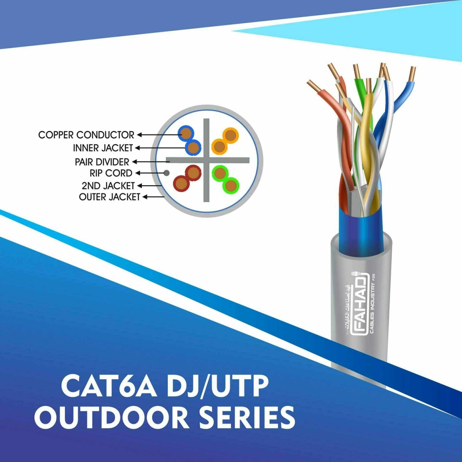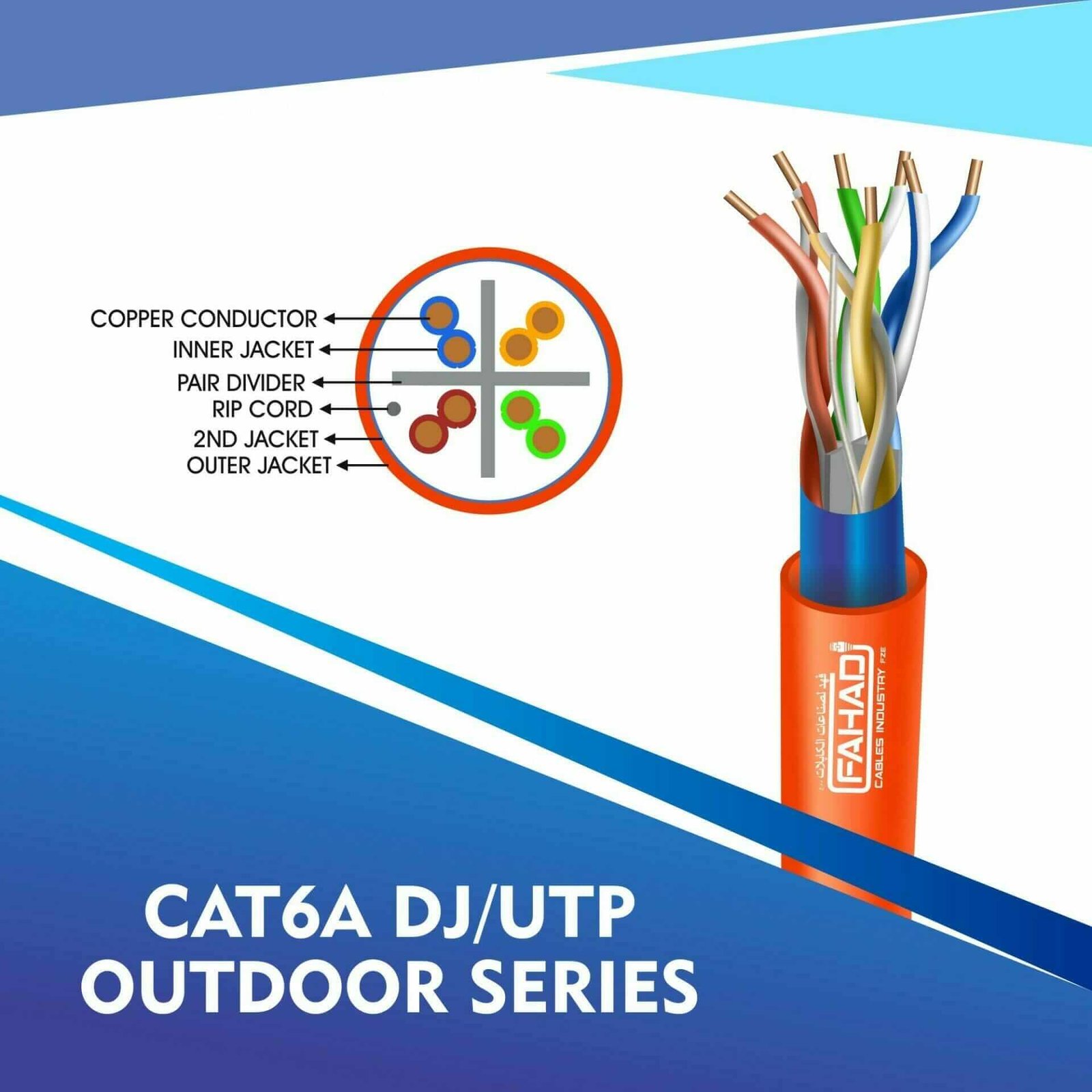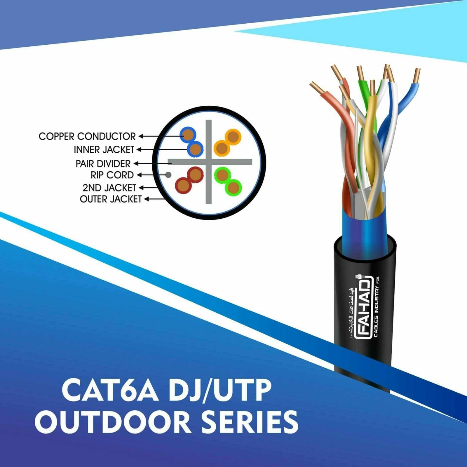Fahad Cables Industries FZE is one of the most Reputable Manufacturers of Network cables in the Middle East. Providing a Happier, Richer Future through Providing Solutions for copper range cat3,cat5e,cat6,cat6a,cat7 and cat8 networking cables Coaxial Cables Automation Cables Industrial and Building Automation Cables data patch cords fiber patch cord pigtails.cat6a 23 awg Outdoor double jacket 4 twisted pair utp network cable 305-500m