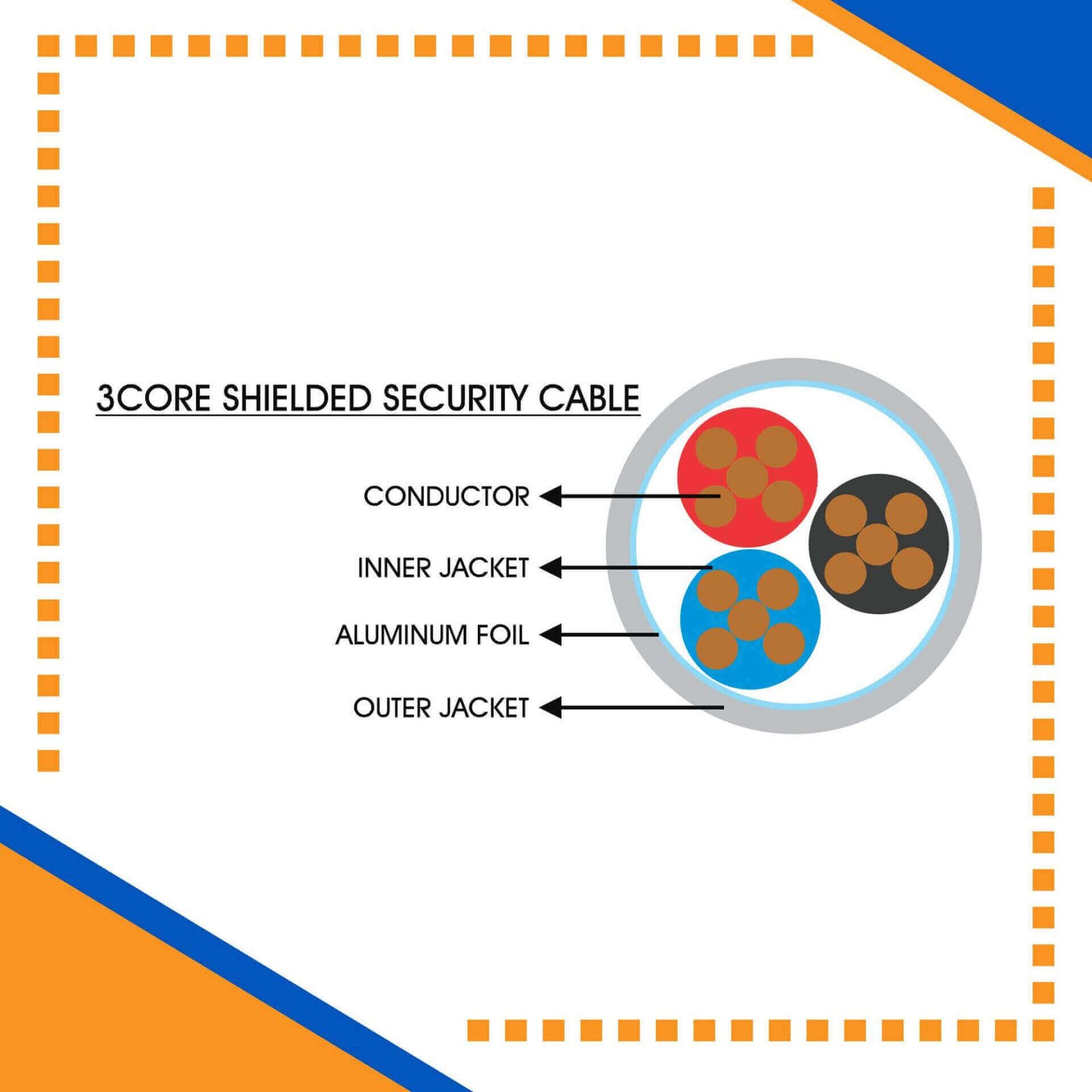 FAHAD CABLES Provides High Quality Security Cable Shielded 3core 1.5mm 305m for use in  Various Industrial And Building Automation Indoor and Outdoor Applications. They Can Be Easily use With Their Flexible Construction in Narrow Application Like CCTV Systems SMATV System Audio Video Intercom Systems Public Address Systems Access Control Systems Burglar Alarm Systems Lighting Control Systems Gate Automation Systems Smart Home Automation Building Automation Systems Computer Systems and Many More ELV Systems. The Products Has Unique Properties and Benefits for Different Types of use. FAHAD CABLES Building Automation Cable Products Can Easily Meet Complex Application Requirements and Specifications. Security Cable Shielded 3 core 1.5mm 305m
