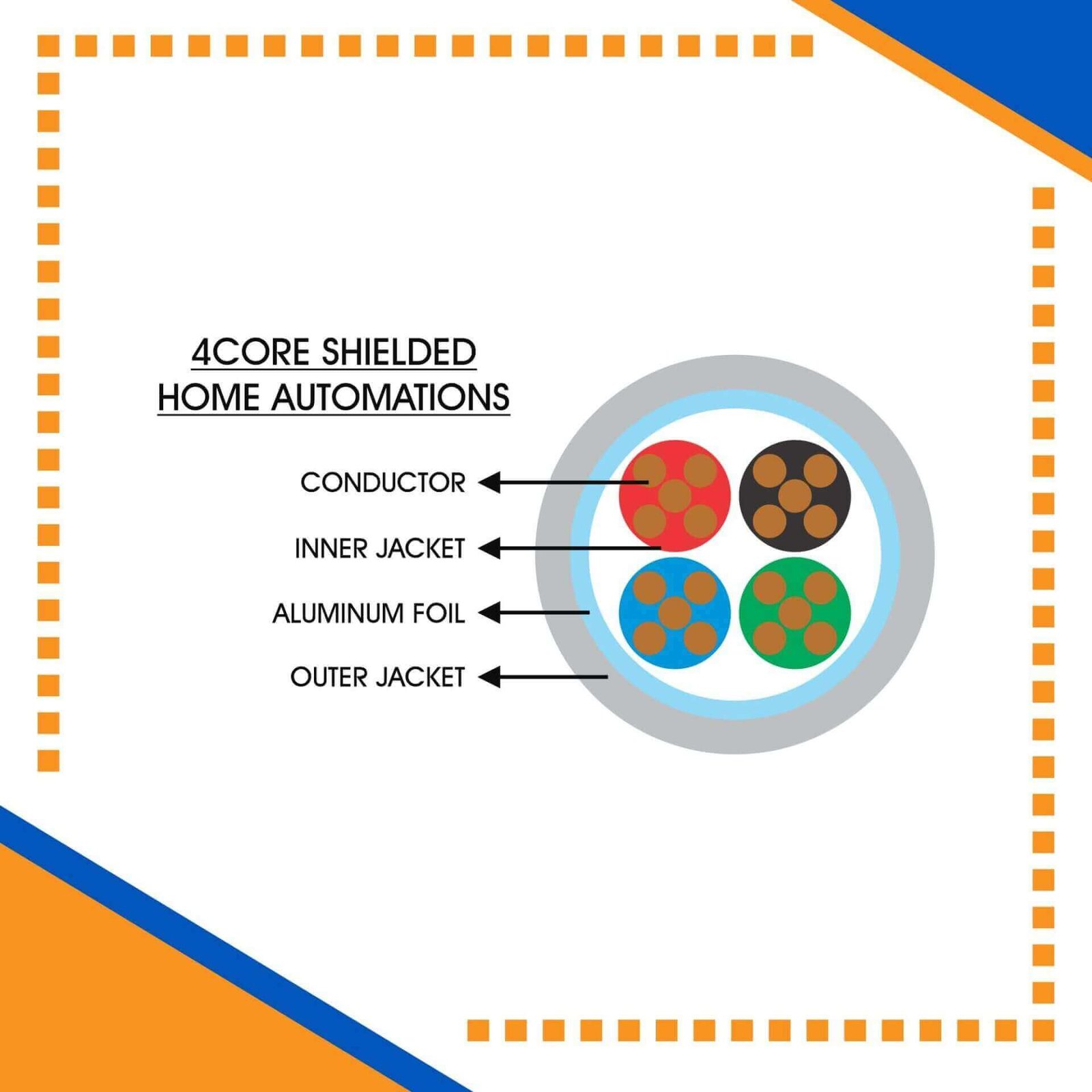 FAHAD CABLES Provides High Quality fci fahd Home Automations Shielded 4 core 1.5mm 305m for use in Various Industrial And Building Automation Indoor and Outdoor Applications. They Can Be Easily use With Their Flexible Construction in Narrow Application Like CCTV Systems SMATV System Audio Video Intercom Systems Public Address Systems Access Control Systems Burglar Alarm Systems Lighting Control Systems Gate Automation Systems Smart Home Automation Building Automation Systems Computer Systems and Many More ELV Systems. The Products Has Unique Properties and Benefits for Different Types of use. FAHAD CABLES Building Automation Cable Products Can Easily Meet Complex Application Requirements and Specifications. Home Automations Shielded 4core 1.5mm 305m